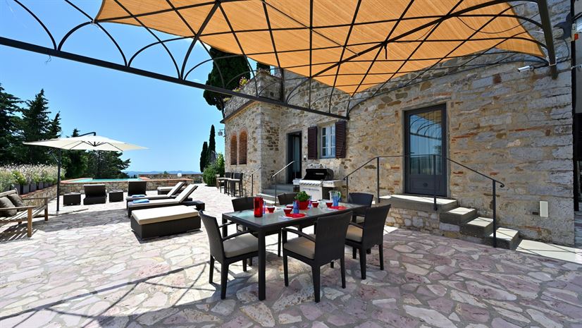 De locatie is heerlijk rustig, landelijk gelegen met schitterende uitzichten over wijngaarden en olijfbomen. Het appartement beslaat de begane grond en de eerste verdieping. Direct buiten bevindt zich een ruim gemeubileerd terras met eethoek, ideaal om buiten te eten of te ontspannen. Het privézwembad sluit direct aan en nodigt uit tot ontspanning.