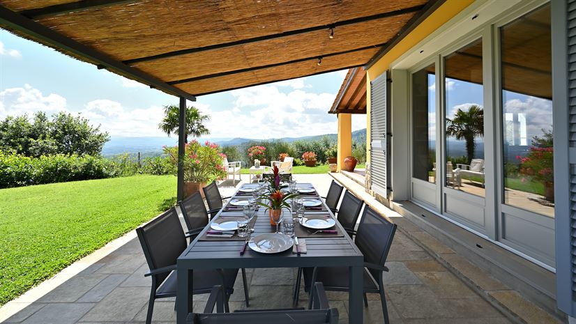 Bent u op zoek naar een compact vakantiehuis met iets bijzonders dan heeft Le Ginestre misschien precies wat u zoekt. In het hart van de Chianti, dichtbij het charmante dorpje Moncioni met uitzicht over een weidse vallei met de rivier de Arno die richting Florence slingert. De panoramische vergezichten over de olijfgaarden vanaf het privé zwembad of overdekte terras zijn adembenemend.