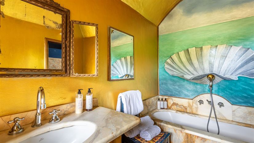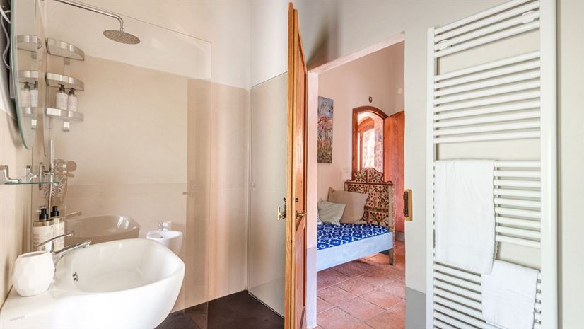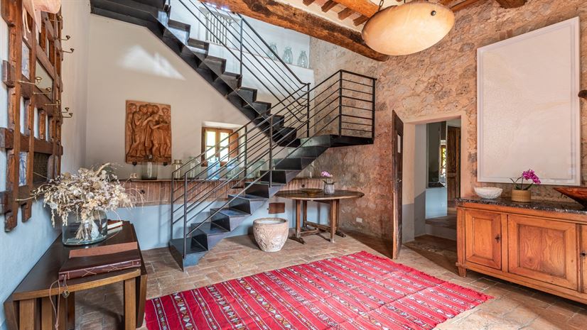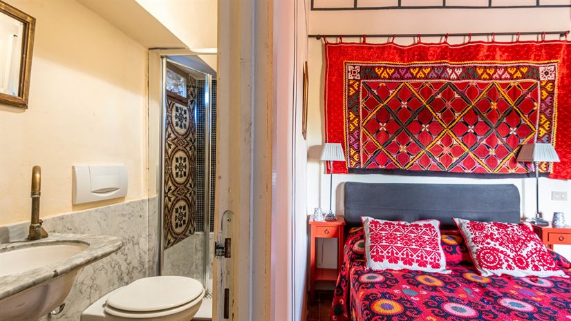 Binnen zorgen kleurrijke vertrekken met terracottavloeren, balkenplafonds en stijlvolle inrichting voor een warme en uitnodigende sfeer.