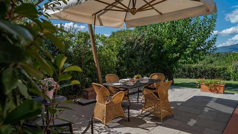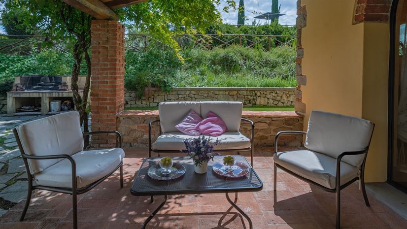 Een pittoreske villa met geweldig mooi uitzicht op de Apennijnen en omliggende valleien. Poggio alle Fonti is een heerlijk huis met grote tuin en idyllische terrassen, perfect om ‘al fresco’ te dineren, ontspannen met een kopje thee, of met een goed glas wijn uit de omgeving. Het grootste overdekte terras is lang en heeft een ruime eettafel waar u in de schaduw samen kunt genieten van zelfbereide maaltijden. Bij het zwembad staan ligbedden en parasols, en er is overkapping om onder te relaxen na het zwemmen. De tuin is volledig omheind, en er is veel privacy bij en om het huis.