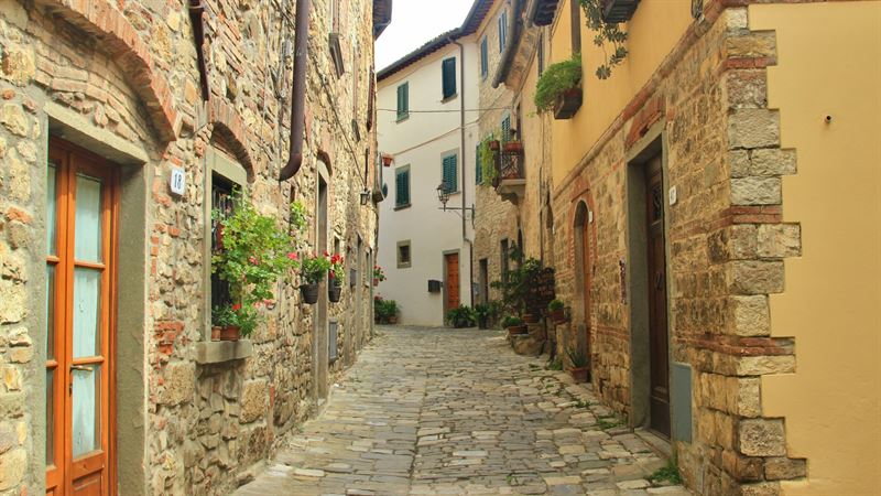 Montefioralle ligt tussen Florence en Siena, boven het plaatsje Greve in Chianti, en wordt beschouwd als één van de mooiste dorpen van Toscane. Het dorp dateert uit 1085 en wordt nog steeds omringd door de originele verdedigingsmuren. Doordat het dorp vrijwel autovrij is, kunt u in alle rust door de geplaveide straatjes wandelen, de kerk van San Stefano bezoeken of genieten van een glas Chianti Classico op een terrasje. Buiten de muren liggen schilderachtige wandelpaden door wijngaarden en olijfgaarden, met een adembenemend uitzicht op de stenen huizen van Montefioralle.