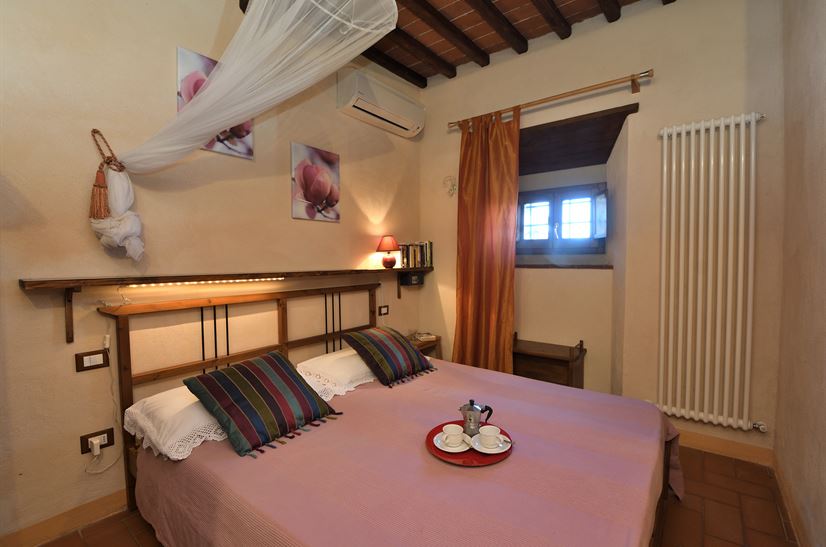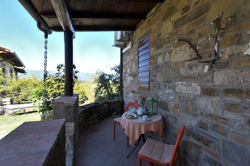 De vakantiewoning bevindt zich op de begane grond van een traditionele, tweelaagse Toscaanse boerderij. Een klein overdekt terras met tafel en stoelen is ideaal voor maaltijden in de buitenlucht. Binnen zet de Toscaanse sfeer zich voort met terracotta vloeren en plafonds van hout en terracotta. De ruimtes zijn met zorg gerestaureerd en warm ingericht.