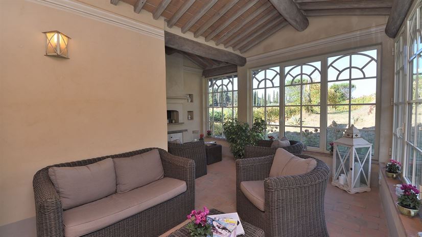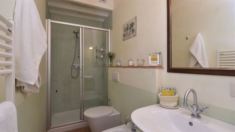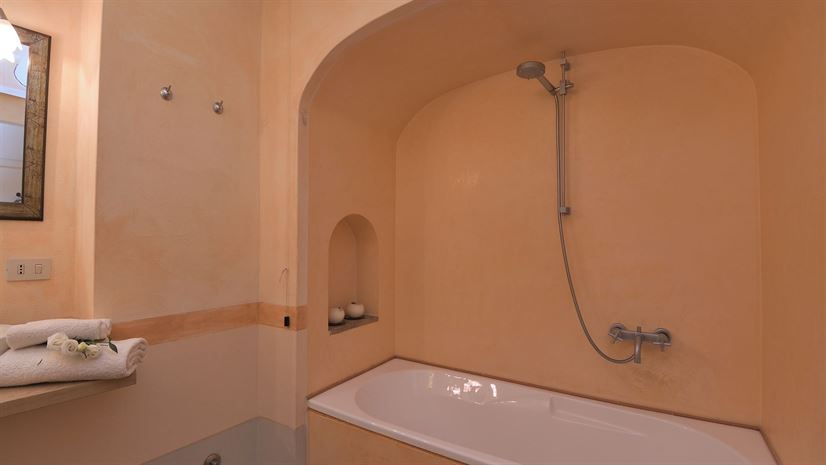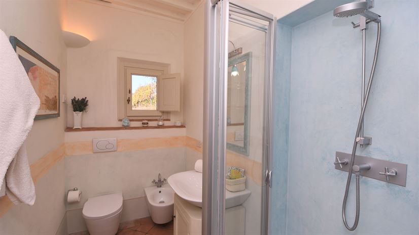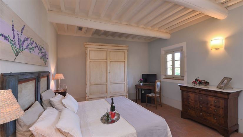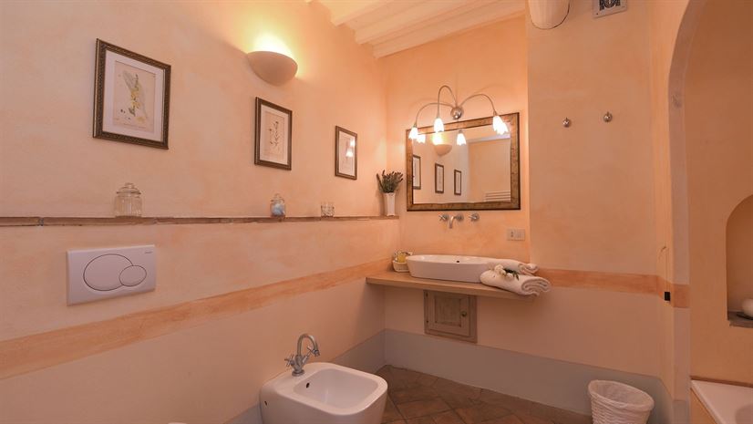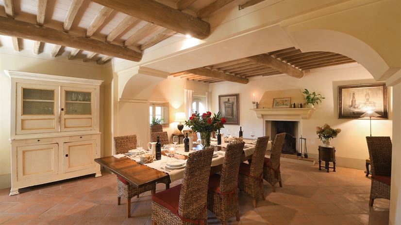 Het vakantiehuis is verdeeld over drie verdiepingen en combineert traditionele Toscaanse elementen met stijlvol comfort. Witte houten balkenplafonds zorgen voor een lichte sfeer, terwijl terracottavloeren en muren in zachte pasteltinten warmte en gezelligheid uitstralen. Smaakvol meubilair in klassieke landhuisstijl, zorgvuldig gekozen details en antieke stukken geven het huis karakter. De professionele keuken is ideaal voor liefhebbers van koken.