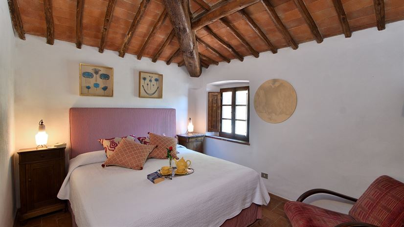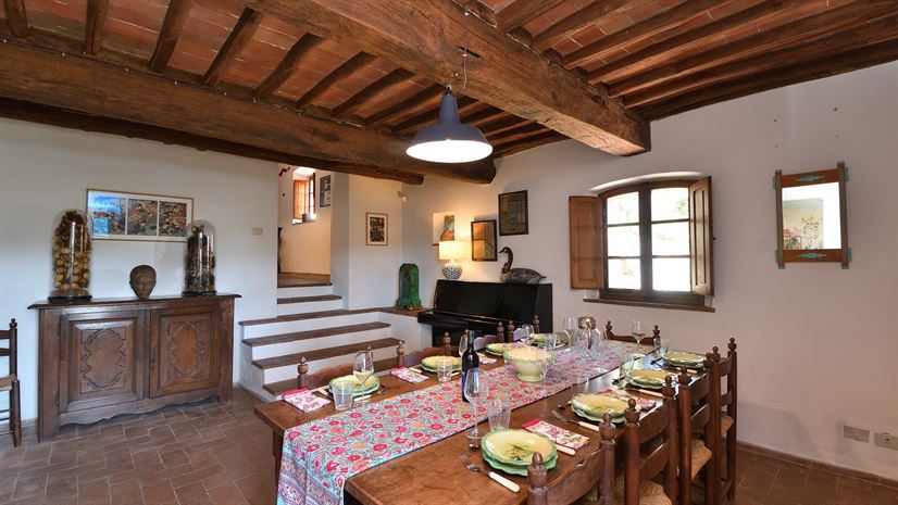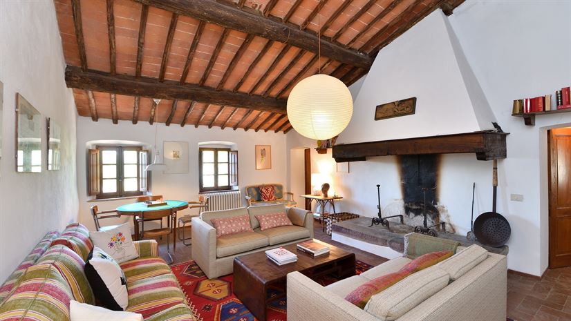De stijlvolle interieurs zijn voorzien van artistieke accenten. De zachte crèmekleurige stoffen met felgekleurde accessoires creëren een ontspannen en elegante ambiance. Zichtbare houten balken, terracotta betegelde plafonds en kastanjehouten luiken geven het pand een klassieke Toscaanse uitstraling. Ondanks de centrale locatie in de Chianti Classico, ligt dit vakantiehuis in Toscane op slechts 1h 20min rijden van het centrum van Florence, en San Gimignano en Siena zijn ook gemakkelijk te bereiken. Het gezellige dorp Lecchi in Chianti ligt op 5,5 km en het op een heuvel gelegen Radda in Chianti ligt op 6 km afstand.
